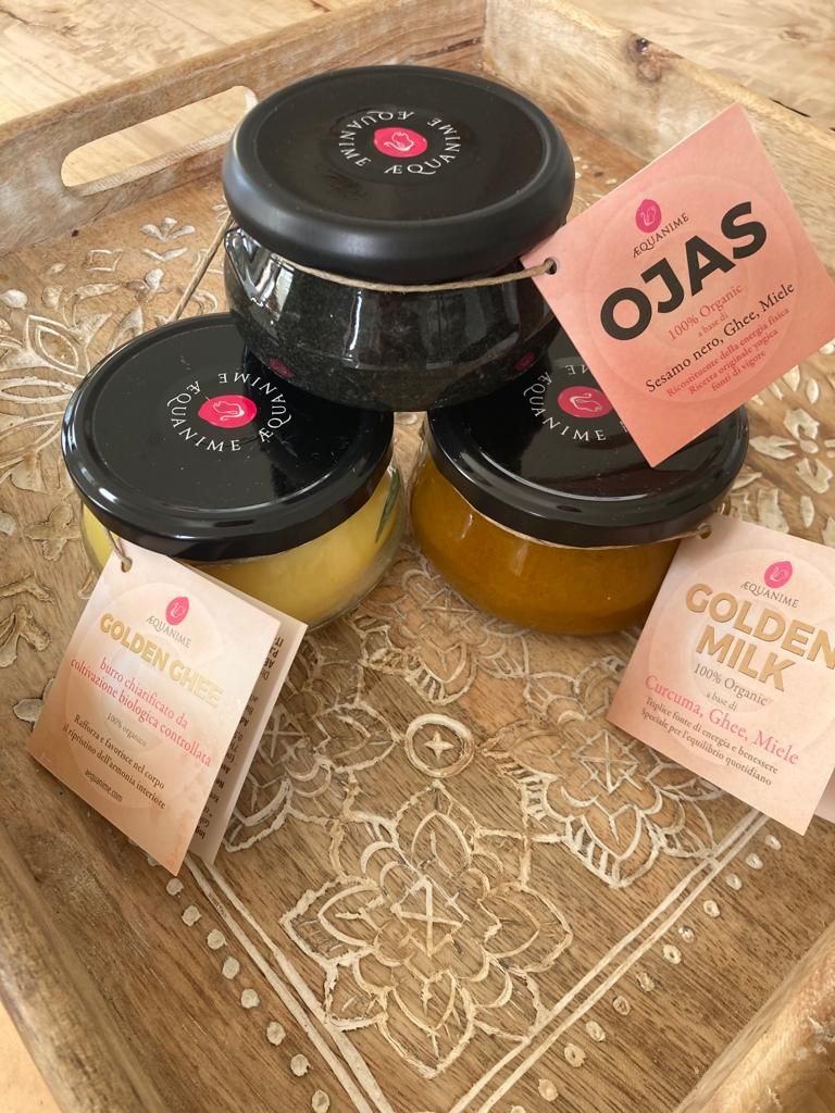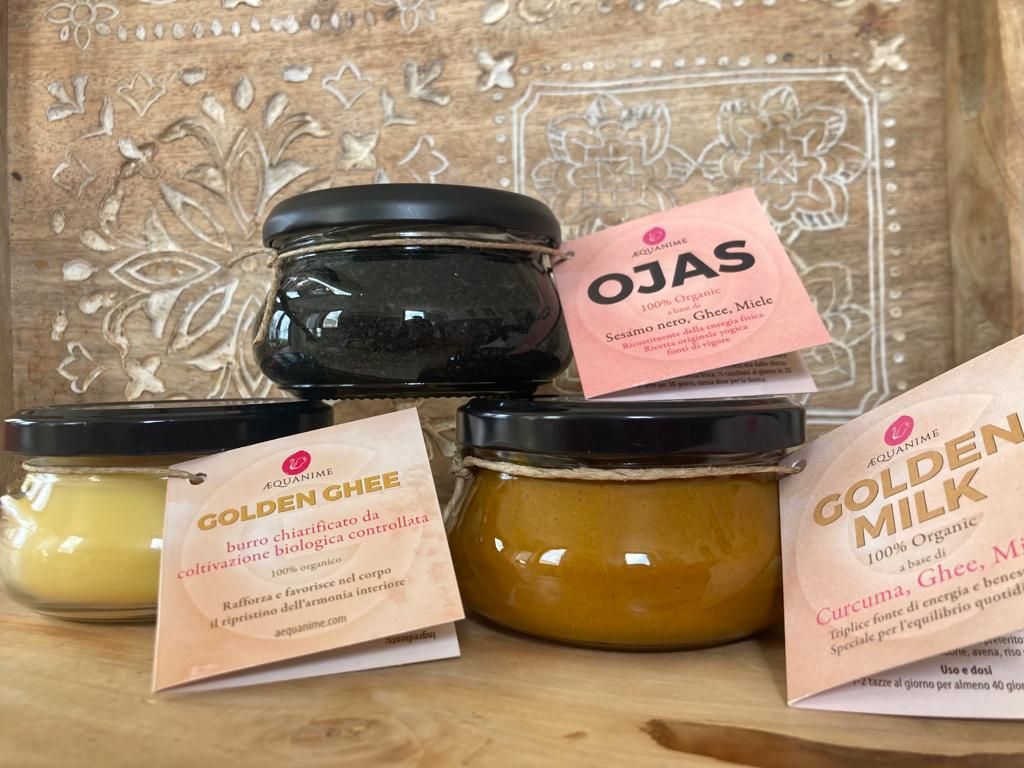 Il GOLDEN GHEE AEQUANIME è oro culinario, burro perfettamente cotto. Il ghee nella dieta quotidiana aiuta a mantenere il benessere ottimale. E’ il migliore di tutti gli alimenti oleosi e viene usato per curare i disturbi della funzione nervosa e nelle condizioni infiammatorie, promuove la memoria, l’intelligenza e la digestione.